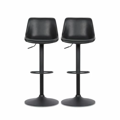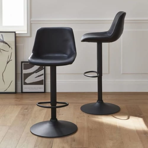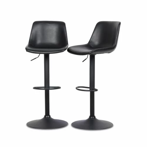 Craquez sur nos tabourets de bar Noah, l’association parfaite entre design et confort. Vous allez apprécier le revêtement de ces chaises hautes en simili cuir solide et ergonomique. Le simili cuir apporte une touche de caractère qui saura réveiller votre intérieur tout en élégance.Ces tabourets de bar sont réhaussés de pieds en métal qui vous assurent stabilité et équilibre. Le repose-pieds est très pratique pour un confort et un maintien optimal. Pour s’adapter à vos besoins, ces tabourets ont une hauteur réglable, ils passent de 60,5cm à 81,5cm de hauteur. Ils pourront ainsi trouver facilement leur place autour d’une table haute, d’un bar ou d’un îlot central. Confortablement installés sur ces tabourets de bar, vous allez avoir envie de rester plus longtemps à table pour refaire le monde entre amis.
