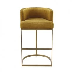 Maisons Du Monde Chaises Et Tabourets De Bar Fauteuil De Bar En Velours Jaune Et Métal Coloris Laiton H75