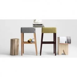 Custom Form Chaises Et Tabourets De Bar Chaise De Bar Tissu Rembourrée Vert Pieds Bois Massif Clair