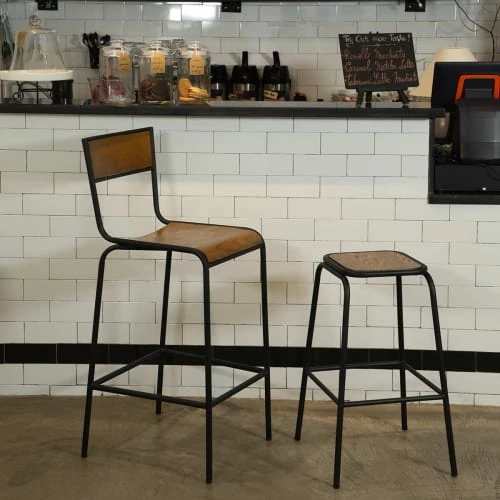 matière : Métal finition noir mat et bois contreplaqué couleur naturel