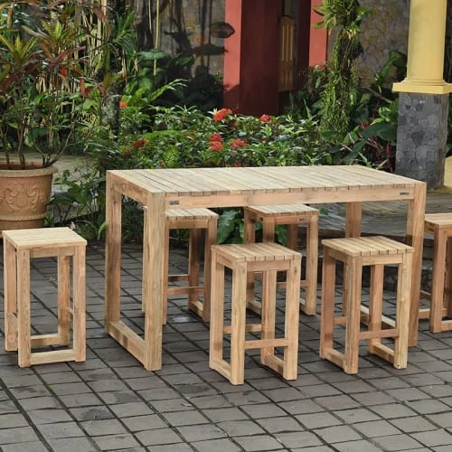Indispensable pour accompagner la table haute Toscagne, le tabouret haut en teck recyclé cultive également charme et authenticité. Ensemble, ils formeront un coin bar chaleureux et convivial pour des apéros ou repas entre amis.