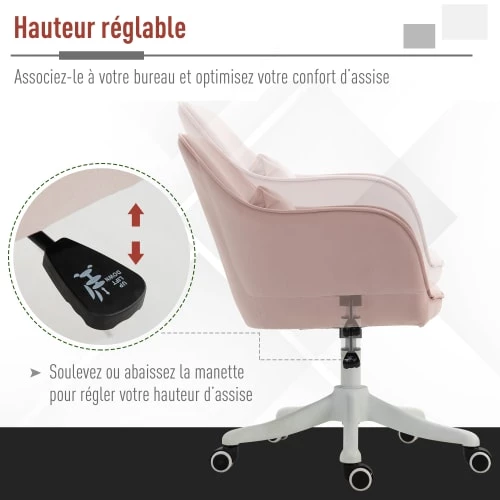 – Chaise de bureau design contemporain revêtement aspect velours rose poudré mélant sobriété et élégance