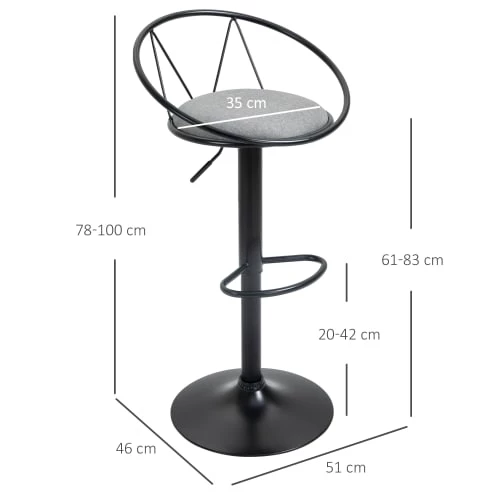 – Hauteur d’assise réglable de 61 jusqu’à 83 cm