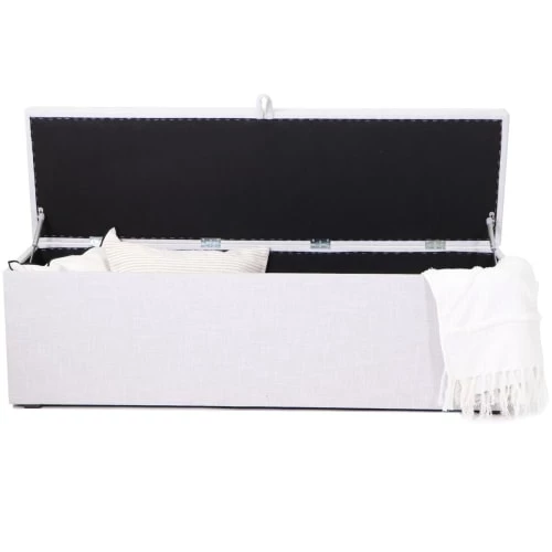• Banc coffre• Peut être utilisé en bout de lit• Convient à un lit 160• Revêtement en tissu gris 100% polyester• Matière : bois• Couleur : gris• Dimensions totales : 160 x30• Garantie 2 ans