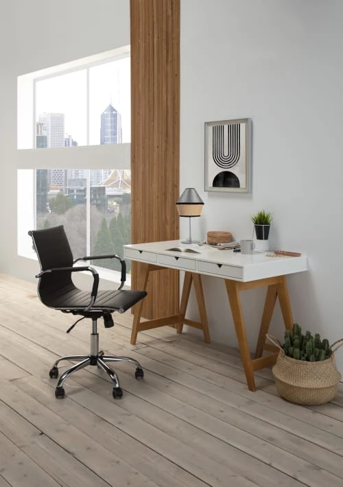 · Revêtement en cuir synthétique et disponible en blanc ou noir.
