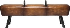 Un banc en cuir qui rappelle les arceaux de gym. Très original, ce banc design adopte un look vintage grâce à son mélange de cuir et de fer laqué. Confortable, il est doté d’une mousse polyuréthane de qualité pour une assise agréable. Dans un salon, une chambre ou une entrée, ce banc marron en cuir ne passera pas inaperçu. Livré partiellement démonté dans un carton de 44 x 156 x 39 cm. Enlevez les miettes et la poussière avec une brosse douce. Vérifiez que votre produit de nettoyage ne décolore pas la matière en l’essayant d’abord sur une zone non visible (par exemple sous l’assise). L’exposition au soleil peut décolorer votre banc.