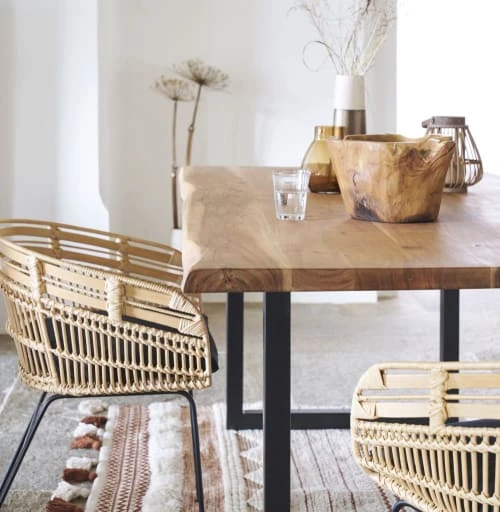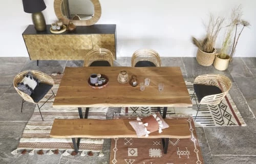 Le banc en acacia et métal noir PALISSANDRE est la pièce qu’il manquait à votre intérieur. Aucun détail n’a été négligé : des pieds solides en métal noir, un plateau en bois d’acacia légèrement teinté qui présente des irrégularités. On est sous le charme ! Selon les saisons et vos envies, ce banc deviendra tour à tour le compagnon de votre table à manger, de votre bout de lit, ou servira d’assise dans l’entrée ou le couloir. 45 cm de hauteur, 200 cm de longueur, avec une profondeur de 35 cm : en voilà des dimensions idéales pour vous accueillir ou mettre en valeur vos plantes fétiches !