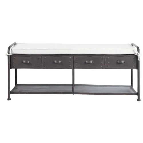 Doté de 4 tiroirs de rangement, ce banc d’appoint est également recouvert d’un coussin pour plus de confort.