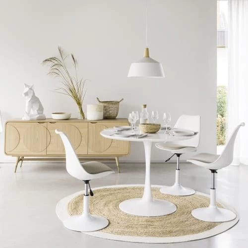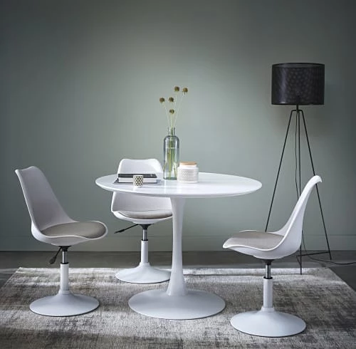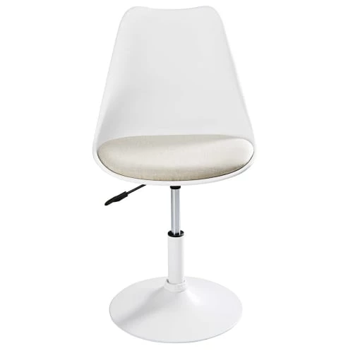 Vous serez bien installé dans cette chaise blanche montée sur un pied. Le petit plus ? Le siège est réglable !