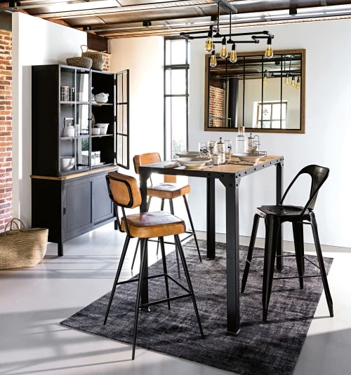 Avec sa silhouette aux pieds obliques et son siège en cuir moelleux, cette chaise de bar industrielle vous permettra de passer de longs moments à discuter en tout confort.