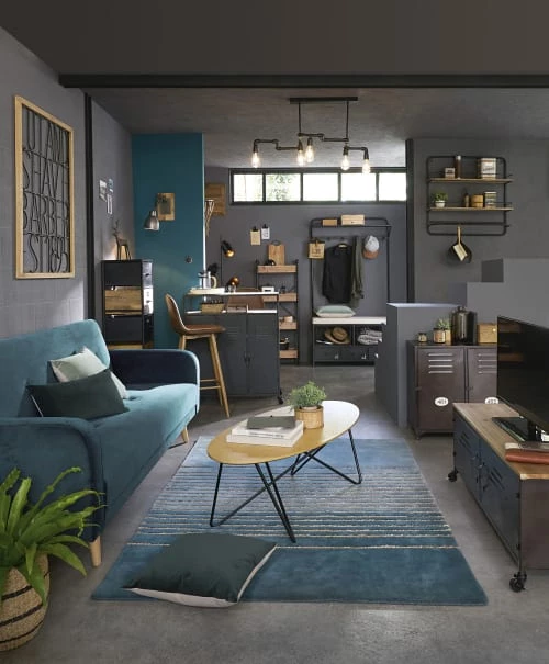 Pieds (à assembler) : métal, impression imitation « chêne »