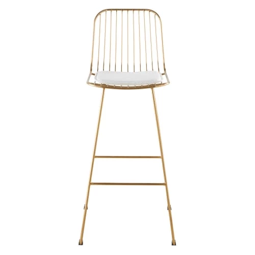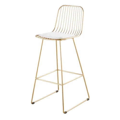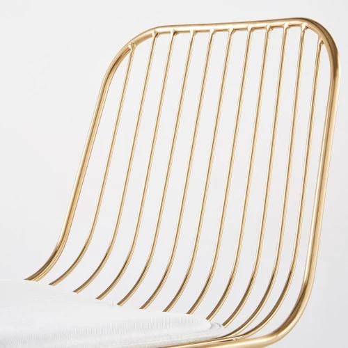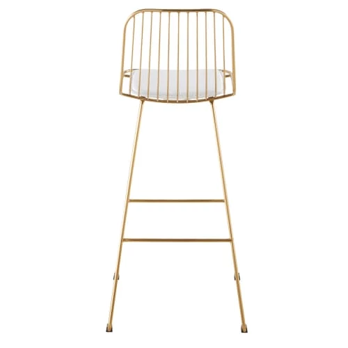 La chaise de bar en métal doré et coton blanc H76 HUPPY a ce petit je-ne-sais-quoi d’assumé et de moderne qui fait d’elle une assise pratique et une pièce déco à part entière. On est sous le charme de son design moderne et aérien avec un piétement et une structure en métal doré, le tout associé à un coussin d’assise confortable en coton blanc. Nous n’en restons pas là puisque cette chaise de bar est également dotée d’un repose-pieds. Pratique quand les discussions entre amis s’éternisent !