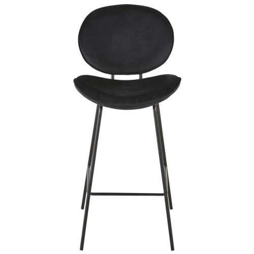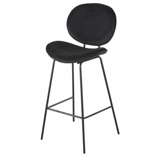 La chaise de bar en velours et métal noirs H73 LUNA deviendra la partenaire idéale lors de vos moments conviviaux ! On l’imagine très bien le long d’un bar en bois ou d’une table haute en métal, ou autour d’un îlot central moderne. Pour répondre à vos envies de design, elle s’est parée de pieds longilignes en métal noir, de courbes incurvées et d’un revêtement en velours noir. Autre atout : cette chaise de bar est dotée d’un repose-pieds. Pratique ! Notre conseil déco : combinez-la à d’autres chaises en velours aux teintes bleu ou jaune moutarde.