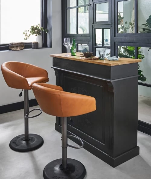 Apportez Ă votre intĂ©rieur un esprit loft avec la chaise de bar indus en cuir camel H60/82 GAMA. Indispensable pour vos soirĂ©es entre amis, cette chaise haute en mĂ©tal vous assurera stabilitĂ© et Ă©quilibre. Le revĂŞtement de l’assise et du dossier en cuir de chèvre marron vous assurera un confort optimal. Le petit plus : le repose-pieds, très pratique pour un maintien total !