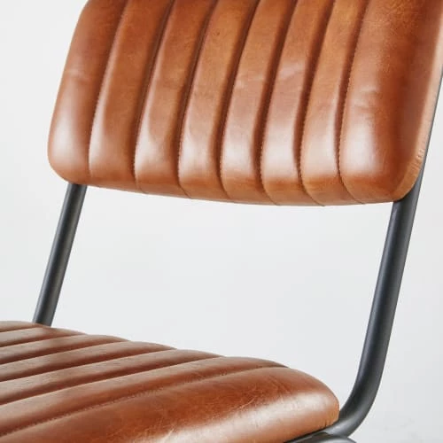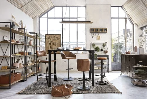 Qui dit look industriel, dit utilisation de matières de caractère. Et cette règle n’a pas échappée à la chaise de bar matelassée en cuir de buffle marron H69 WENDELL. Un look masculin qui en jette, un grand confort grâce au garnissage généreux de l’assise et du dossier et un bon maintien : cette chaise de bar a tout pour séduire ! Du haut de ses 68,5 cm, elle vous accueillera lors de vos moments de détente après une longue journée, tout en insufflant son style factory à travers la pièce.