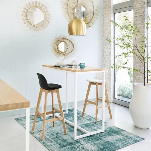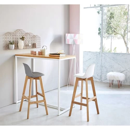 Discrète, la chaise de bar grise et chêne ICE offrira à votre coin repas une assise haute et stylée. Avec sa ligne stylée et ses pieds en chêne, cette chaise de bar style scandinavedonnera du cachet à un petit espace. Son siège garni en mousse et son dossier en feront une assise des plus confortables pour prendre de bons repas. Installez plusieurs chaises autour d’une table de bar, et n’hésitez pas à dépareiller les couleurs !