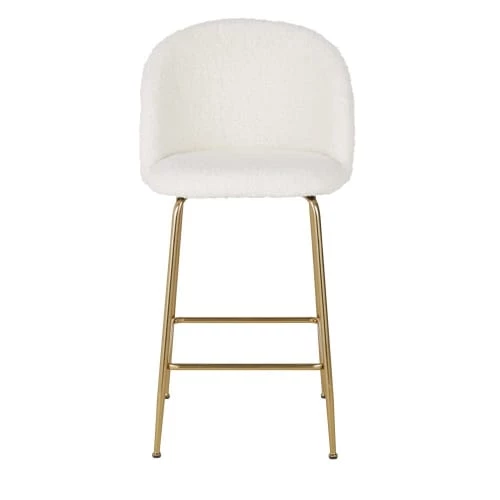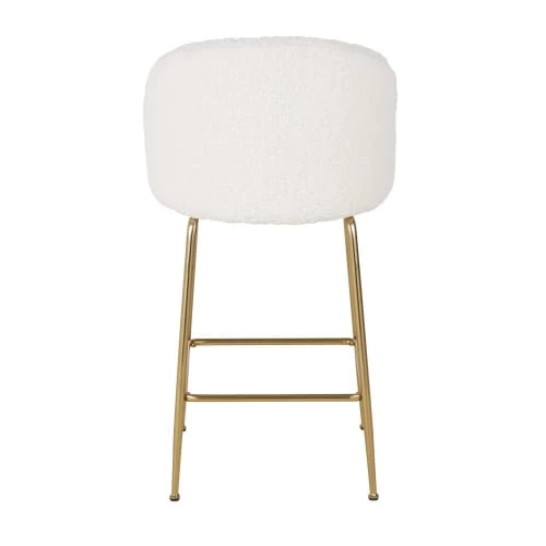 Autour de votre îlot central, créez une ambiance chic et convivial avec la chaise à bouclettes blanches H65 GINETTE. Vous apprécierez son revêtement au coloris pur et apaisant hissé sur des pieds en métal doré qui lui donne un style contemporain. Très originale, cette chaise est irrésistible et vous donnera envie de vous asseoir, n’est-ce pas ?