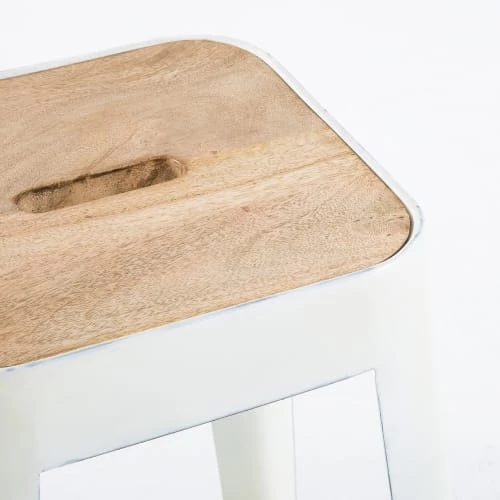 Votre meuble de bar se sent terriblement seul ? Offrez-lui la compagnie du tabouret de bar indus en métal blanc MANUFACTURE ! Hissé sur une structure en métal blanc, ce tabouret industriel vous garantit une robustesse sans faille grâce à son assise en bois de manguier. Avec sa teinte immaculée, ce tabouret en métal apportera une touche de luminosité dans votre intérieur. Votre meuble de bar se sent déjà mieux !