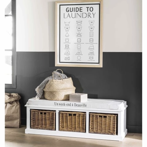 À la recherche d’un banc confortable et fonctionnel pour meubler votre entrée ? Découvrez le banc de rangement 3 compartiments blanc COMPTOIR DES EPICES. À la fois banc et meuble de rangement, il s’avère très pratique et donnera du cachet à votre petit espace. Les atouts de ce meuble d’entrée ? Son matelas en coton beige ainsi que ses trois paniers en rotin. Un véritable 2 en 1 qui s’intégrera parfaitement dans une déco classique chic, maison de campagne ou bord de mer !