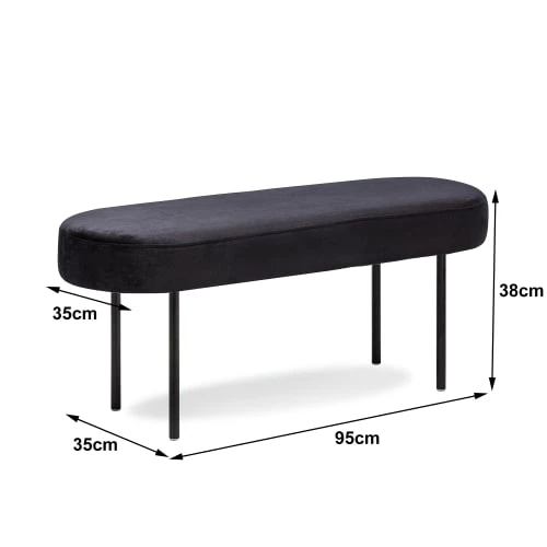 Dimensions produits = 95 x 35 x 38 cm ; Hauteur d’assise = 38 cm ; Profondeur d’assise = 35 cm ; Poids du produit = 4.5 kg ; Poids total du colis = 6 kg ; Poids maximal supporté = 150 kg ; capacité d’assise = 2 personnes ; Produit à assembler = Oui ; Produit empilable = Non ; Epaisseur de mousse = 3 cm ; densité de mousse = 26 kg / mètre cube ; Poids du tissu = 320 g / mètre carre ; Certification 1 = Tissu certifié OEKO-TEX de composition saine et durable ; Finition du métal = Epoxy noir