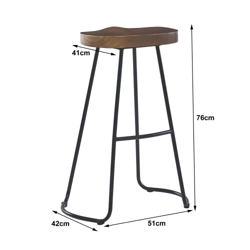 Dimensions produits = 51 x 42 x 76 cm ; Hauteur d’assise = 76 cm ; Profondeur d’assise = 41 cm ; Poids du produit = 9.5 kg ; Poids total du colis = 11 kg ; Poids maximal supporté = 120 kg ; capacité d’assise = 1 personne ; Produit à assembler = Oui ; Produit empilable = Non ; Certification 1 = Bois certifié durable FSC ; Finition du métal = Epoxy noir ; Finition du bois = Finition marron