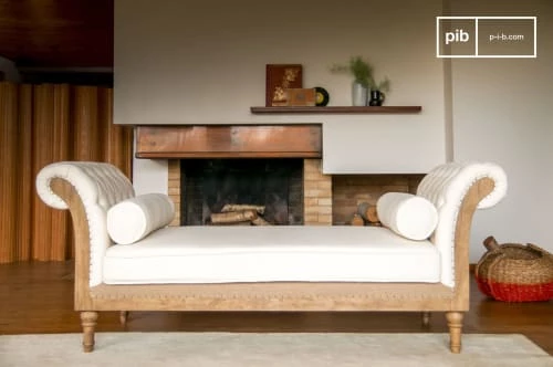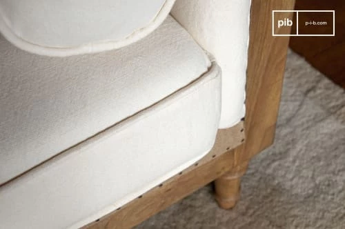matière : Un tissu 100% naturel.Nous utilisons, pour ce produit, une étoffe de lin et de cotton 100% naturelle. Le tissu (60% cotton, 40% lin, 370g/m²) est plongé dans un bain de pigments naturels sans aucune utilisation de couleur artificielle. Le soin apporté à sa confection et à son traitement en font un matériau doux, durable, et élégant. Il est par la suite posé sur une structure en bois massif ornée de toile de jute. Le cloutage et les noeuds sont entièrement réalisés à la main, et combinent tradition et modernité. L’assise est rembourrée d’une mousse haute résilience micro-alvéolée de 32kg/m3, apportant ainsi légèreté et résistance.