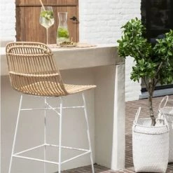 Meubles & Design Chaises Et Tabourets De Bar Tabouret De Bar En Rotin Et Métal Blanc