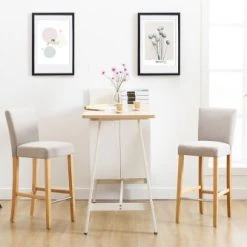 Moloo Chaises Et Tabourets De Bar Chaise De Bar Tissu Lin Pieds Bois Naturel (x2)