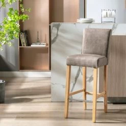 Moloo Chaises Et Tabourets De Bar Chaise De Bar Vintage Microfibre Marron Clair Pieds ChĂȘne(x4)
