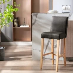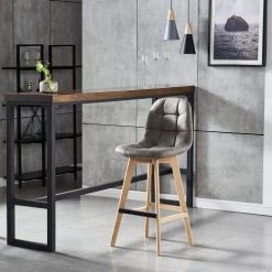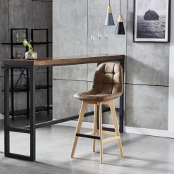 Moloo Chaises Et Tabourets De Bar Chaise De Bar Vintage Microfibre Marron FoncĂ© Pieds ChĂȘne(x2)