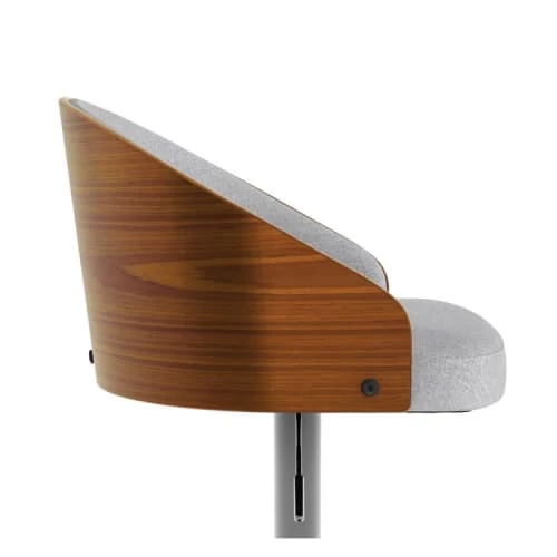 Materiaux : Assise et dossier en tissu et en bois plaqué noyerPieds en métal chromé