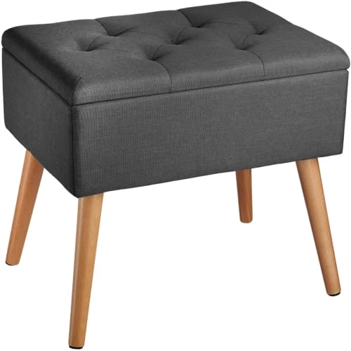 Moderne, pratique et stable : découvrez notre banc RANYA tectake. Craquez pour son beau design contemporain alliant le revêtement en tissu (lin) au bois de hêtre. Ce banc renferme un coffre de rangement spacieux que vous adorerez. Ce petit meuble est très pratique dans une entrée ou un vestibule pour s’asseoir, retirer ses chaussures confortablement et y ranger gants et écharpes. Le banc RANYA tectake ajoutera le petit plus manque à votre intérieur. Dimensions totales (LxlxH) : environ 51 x 37,5 x 45,5 cmÉpaisseur de l’assise : environ 2,5cmDimensions du coffre de rangement (LxlxH) : environ 46 x 31 x 13 cmVolume du coffre de rangement : environ 18,5 lHauteur des pieds : environ 27 cmPoids maximal supporté : 300 kgPoids : environ 5,5 kgMatériaux : panneaux MDF, mousse, bois de hêtre, 100% polyester