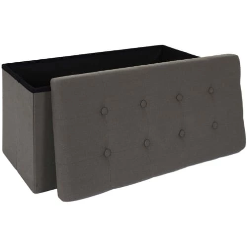 Coloris : gris Aspect : Coloris = Gris • Matériau principal = Polyester • Matériaux secondaires = MDF Polyuréthane • Autres dimensions : Hauteur d’assise = 38 • Dimensions : Hauteur (en cm) = 38 • Longueur (en cm) = 76 • Profondeur (en cm) = 38 • Autres caractéristiques : Informations complémentaires = Pliable , 2 en 1 : assise et rangement • Poids (en kg) = 5,60 • Banc coffre pliable Eleonor