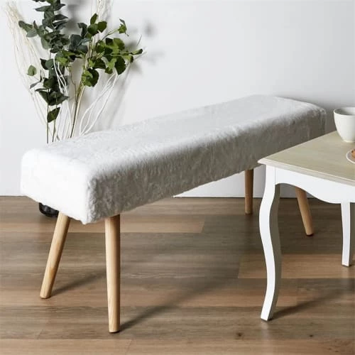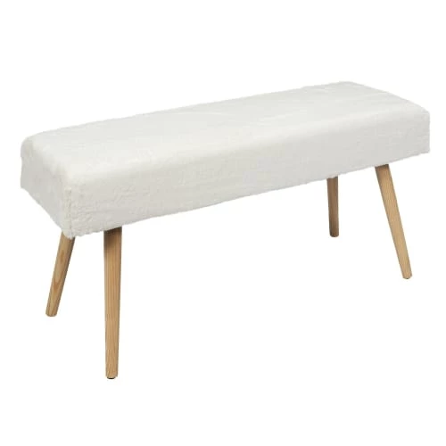Le banc Auréa, en fausse fourrure, trouvera facilement sa place dans votre intérieur. Campé sur ses 4 pieds, il donnera une touche cocooning au bout de votre lit, de confort dans votre salle à manger, ou d’élégance dans votre entrée.FICHE TECHNIQUE- Banc en fausse fourrure.- Couleur : Blanc et bois clair.- Structure en bois de Pin.- Revêtement et rembourrage en polyester.- A monter soi-même.- Notice de montage inclue.CARACTERISTIQUES TECHNIQUES- Dimensions : Longueur 100 cm x Largeur 35 cm x Hauteur 45 cm.- Hauteur d’assise : 45 cm.- Profondeur d’assise : 35 cm.- Dimensions du carton : Longueur 111 cm x Largeur 38 cm x Hauteur 16 cm.- Poids : 7,60 kg.