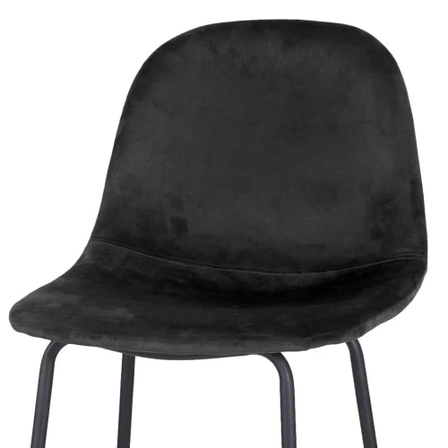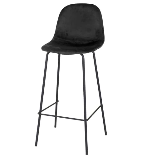 Tabouret de bar en métal noir et assise en tissu velours noir. Barre repose-pieds.Dimensions: 47x43x105cmHauteur d’assise: 76cmCouleur: NoirMatière: Métal et Polyester