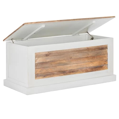 Le bois de manguier massif est particulièrement remarquable en raison de ses grains accrocheurs et contribue à un climat ambiant agréable. Ce coffre pratique vous offre un espace de rangement extrêmement important tout en étant attrayant et de grande qualité.